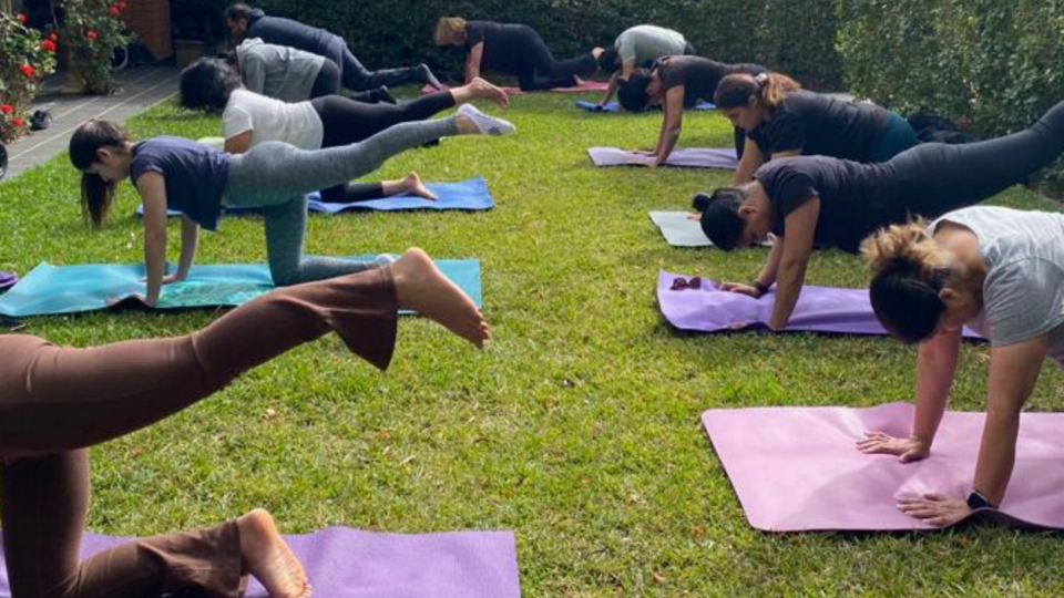 Bring: yoga mat, water bottle, towel